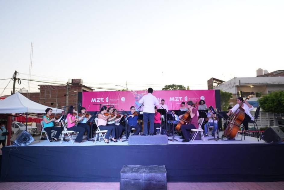 Alumnos y maestros de los distintos talleres de música, así como del nivel técnico y licenciatura del Centro Municipal de las Artes, brindaron un sensacional concierto en la Plazuela de Villa Unión en la apertura del Programa “Sábados de Sindicaturas.