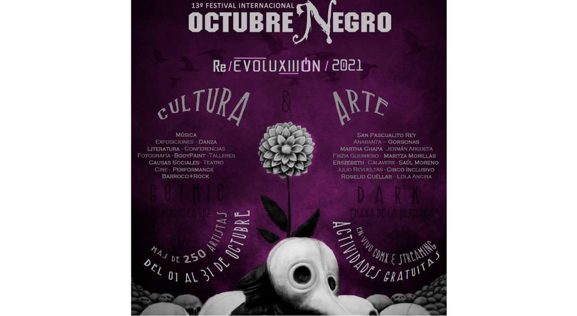 El Festival Internacional Octubre Negro emano de la escena oscura (sector Dark o gótico) de México; es una alternativa disruptiva que promueve el arte y la cultura y los valores de la CDMX.