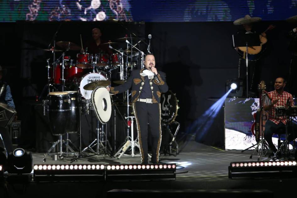 Tras una breve pausa, al escenario llegó la figura de Pepe Aguilar, el patriarca de la familia, quien luciendo elegantemente su traje de charro en color negro, abrió su presentación con su más reciente tema llamado El Zacatecano, seguido de las piezas románticas Recuérdame bonito y Por unas monedas.