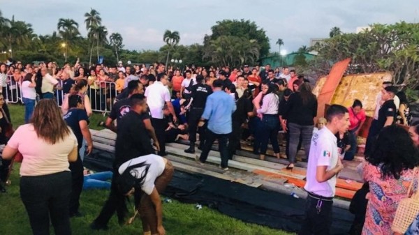 NAYARIT._ Alrededor de 40 personas resultaron heridas tras el colapso de unas gradas antes del concierto de la cantante Yuridia, en un hotel de Nuevo Vallarta, Nayarit.