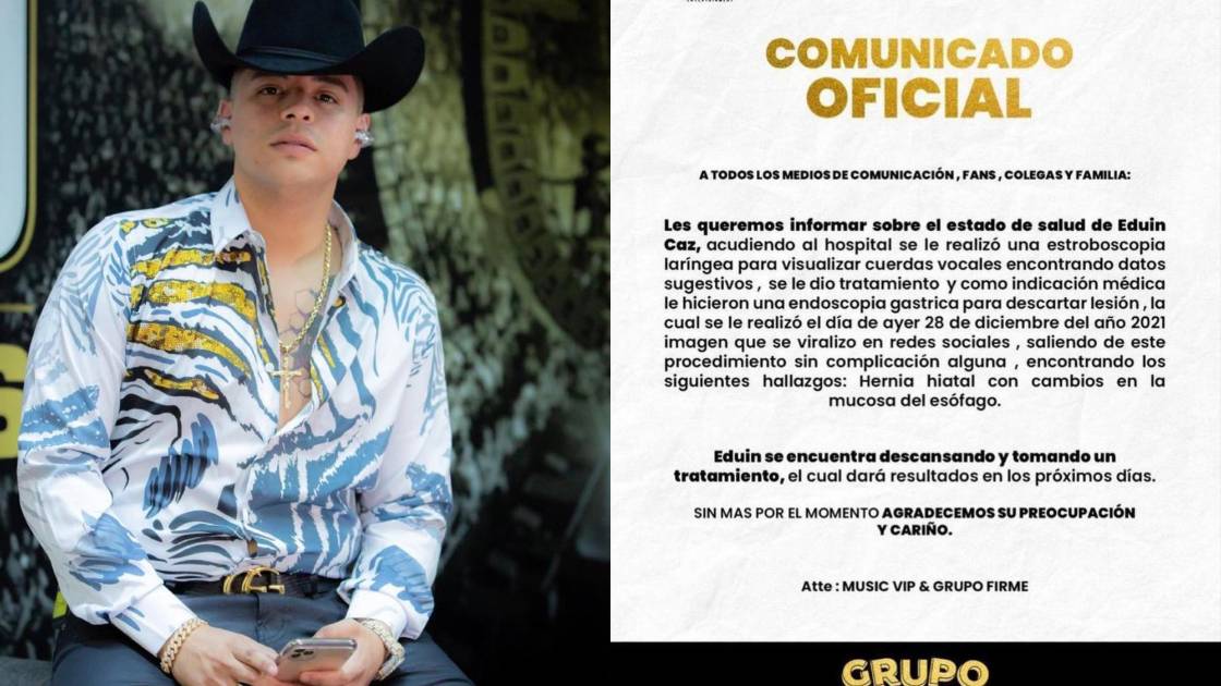 Eduin Caz, vocalista de Grupo Firme se encuentra hospitalizado y después de tantas especulaciones sobre su estado de salud, por fin se emitió un comunicado en el que describen el motivo real por el que está delicado.