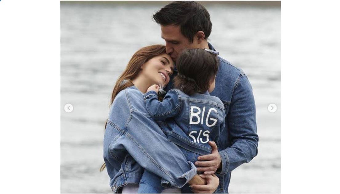 La pareja compartió una sesión de fotografías en un hermoso campo de la mano de su hija Kira.