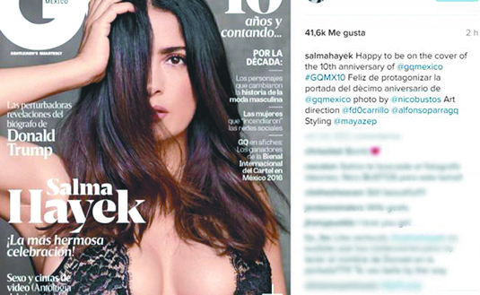 Salma es protagonista de la portada del décimo aniversario de “GQ” México, según informó ella misma para acompañar la fotografía.