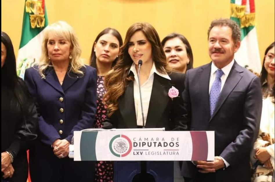 La artista llegó acompañada de la productora Carla Estrada y de los legisladores de Morena, para que aprobaran esta reforma que tiene como objetivo sancionar a los implicados con hasta 15 años de cárcel y 30 mil días de multa.