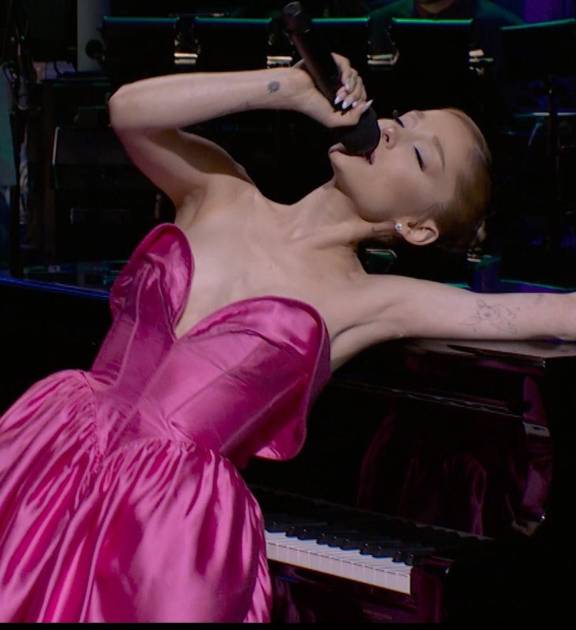 Durante su actuación, Grande interactuó con Bowen Yang, del elenco de SNL, quien estaba disfrazado de Glinda, su personaje en la próxima adaptación cinematográfica de Wicked que llegará a los cines el próximo 22 de noviembre.