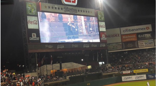 La pirotecnia dejó perplejo al público ya que de una manera impresionante no cesó de iluminar el campo del nuevo Estadio de los Tomateros por varios minutos.