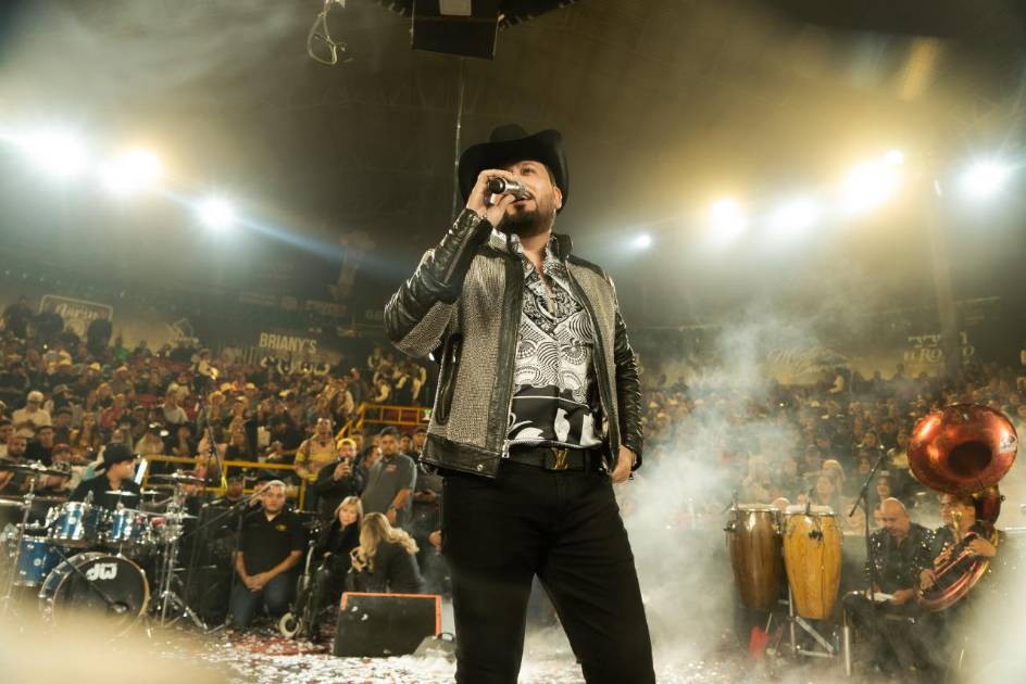 Su arribó al redondel se dio tras la participación de Los Nuevos Rebeldes, donde el cantautor apareció para cantar alternando banda, norteño y mariachi los temas que ha hecho éxito por más de 25 años de carrera artística.