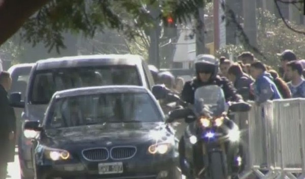 A las 12:21 horas ingresó el vehículo que transportó desde el aeropuerto a Shakira y Piqué, que poco antes de las 12:00 aterrizaron en la ciudad.