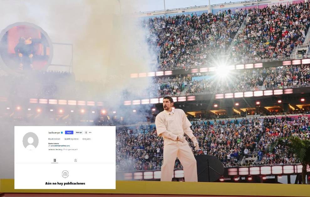 Bad Bunny sacudió de nuevo las redes, al eliminar todas las publicaciones de su cuenta oficial de Instagram, luego del show de medio tiempo del Super Bowl 2026.