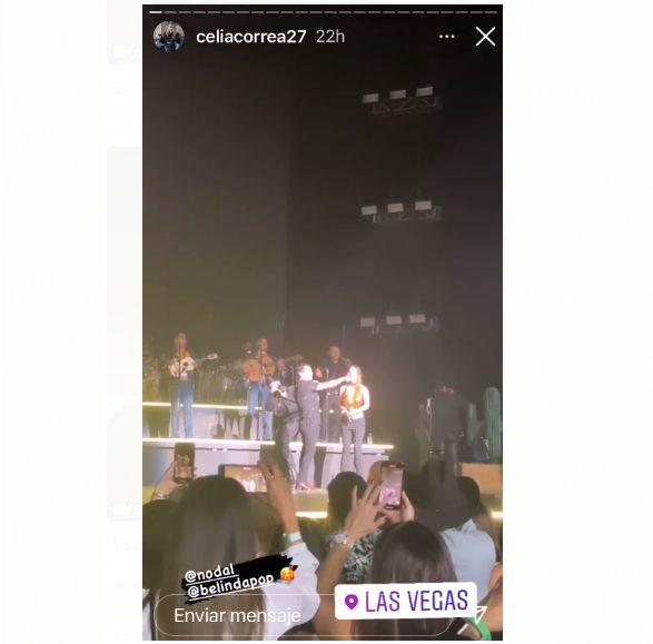 En las historias de Instagram que subió Celia se aprecia cómo primero el intérprete de Botella tras botella comienza a corear junto al público el nombre de “Beli”, hasta que la cantante sube al escenario y llena de besos a Nodal.