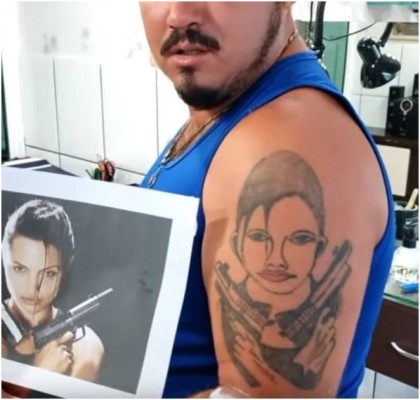 Un joven en Brasil, fanático de Angelina Jolie, quiso plasmar el rostro de la actriz en su piel pero el resultado fue decepcionante.