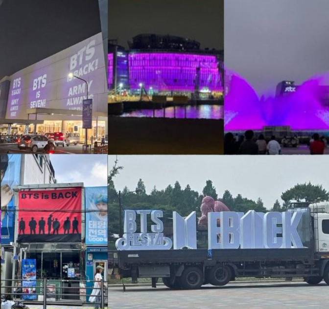 Durante las últimas semanas, diversos espacios de Seúl han sido adornados con pancartas de gran tamaño que felicitan y dan la bienvenida a los integrantes con frases como “Golden Return Jungkook”, “Jimin Is Back” y “Namjoon-ah, congratulations on your discharge!” que son visibles en calles principales, estaciones del metro y autobuses, en un despliegue que recuerda a una verdadera fiesta nacional, de acuerdo con elimparcial.com.