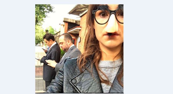 “Día del padre! Soy papá suplente en el festival del colegio esta mañana… nadie sospecha ... Nadie sospecha...”, escribió la actriz en su cuenta de Instagram para acompañar una imagen en la que aparece con lentes, cejas y bigote falso.