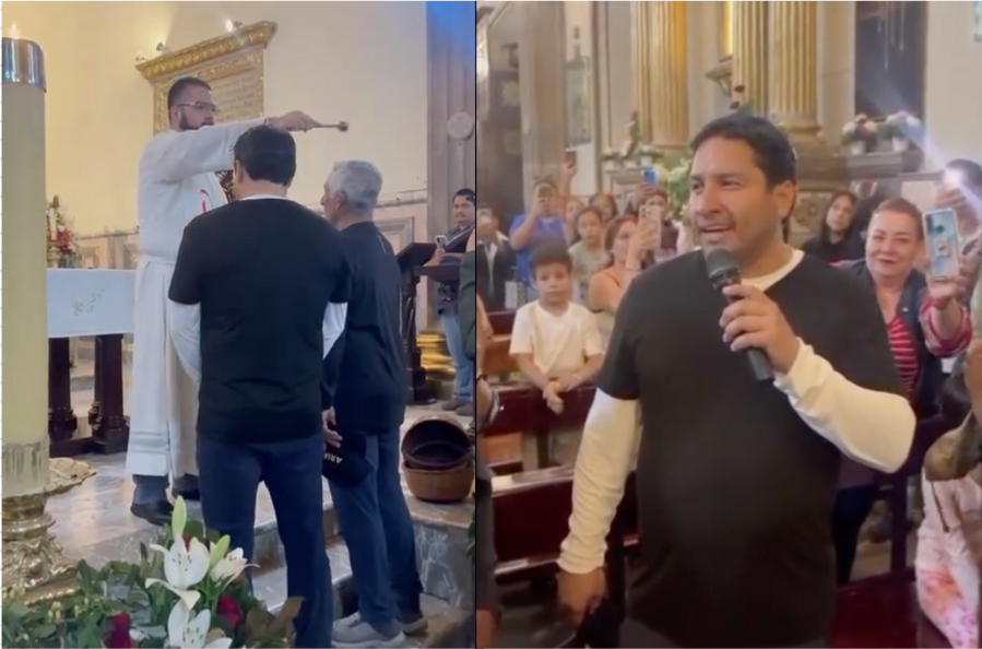 En uno de los videos posteados en TikTok, se puede ver al cantante llegar a la iglesia, para dirigirse hasta el atrio de la iglesia, para recibir la bendición del sacerdote, para posteriormente sorprender a los ahí presentes.