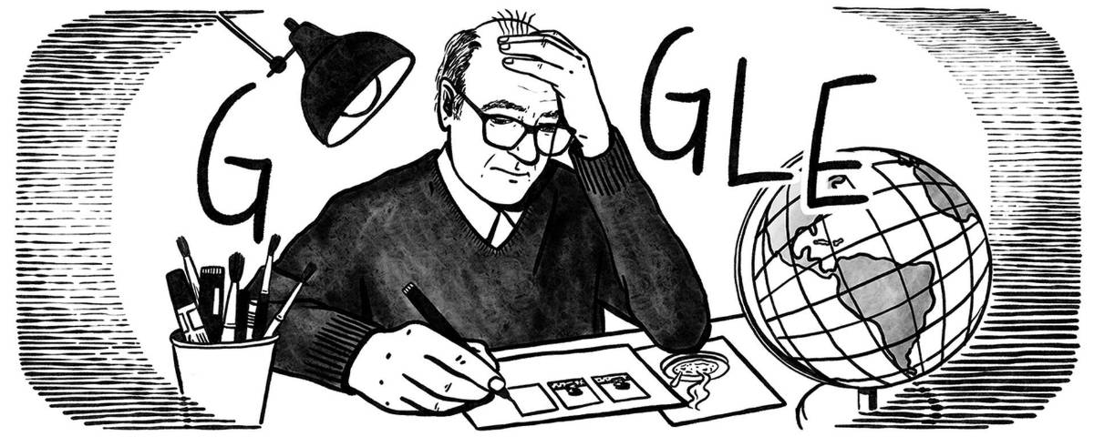 Y Google lo homenajea durante todo el día en su buscador un doodle, una imagen a blanco y negro del artista, que se hizo conocido por el uso de la sátira social para reflejar situaciones de la vida diaria.