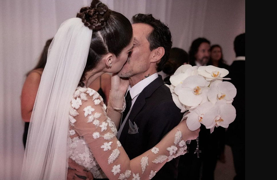 En la primera foto, la pareja se muestra compartiendo un apasionado beso después de pronunciar sus votos, irradiando alegría y complicidad. La segunda instantánea captura a Marc Anthony, de 55 años, expresando su aceptación con entusiasmo mientras un altar de rosas blancas enmarca la romántica escena, detalla publimetro.com
