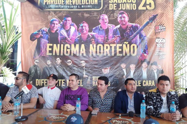 Enigma Norteño llegará con toda su “artillería” junto con otras agrupaciones musicales. La agrupación sinaloense Enigma Norteño se presentará el próximo 25 de junio en el Polideportivo Juan S. Millán, mejor conocido, como El Parque Revolución, donde esperan poner a todos de pie y corear sus temas más populares.