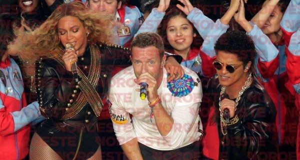 Después siguió el turno de Bruno Mars con Uptown funk y Beyoncé, quienes se reunieron en el escenario con Coldplay para cerrar el show.