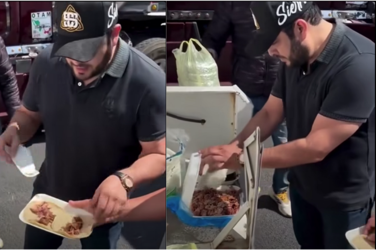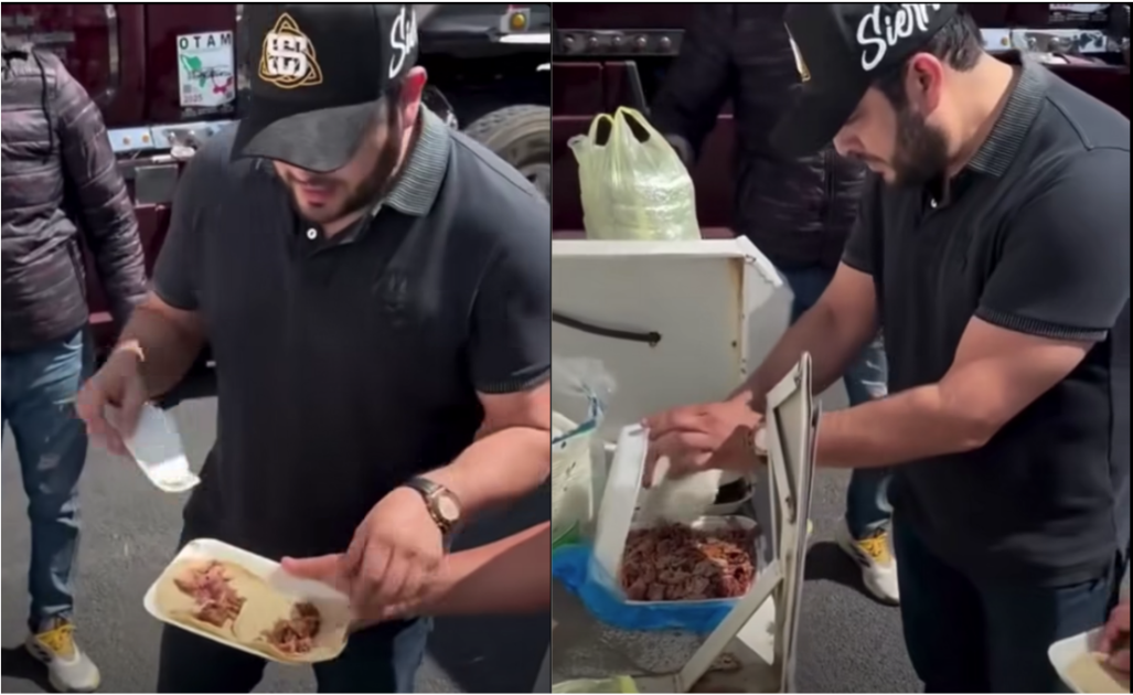 Tras ese momento, el cantante decidió darle buena cara al mal momento y regaló taquitos a algunas personas que también se encontraban en la zona esperando poder pasar.