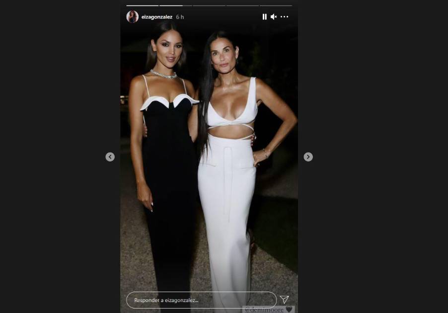 Posteriormente, Eiza compartió con sus seguidores una fotografía de ambas en compañía de la actriz Kate Hudson, cuyo vestido vanguardista dejó ver mucho de su figura con aperturas en distintas partes del torso.