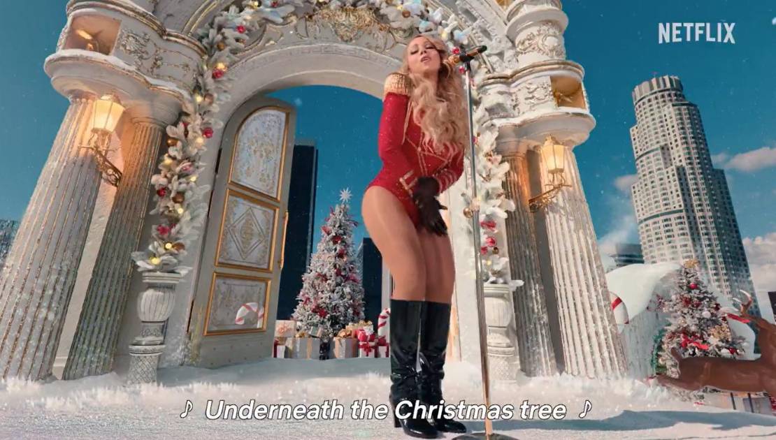 Recién salida de su gira navideña, Carey salió en Netflix con una interpretación grabada del tema con el que ha estado en la cima del Billboard Hot 100 a su decimoquinta semana acumulativa, impulsada por transmisiones masivas, transmisiones al aire y ventas.