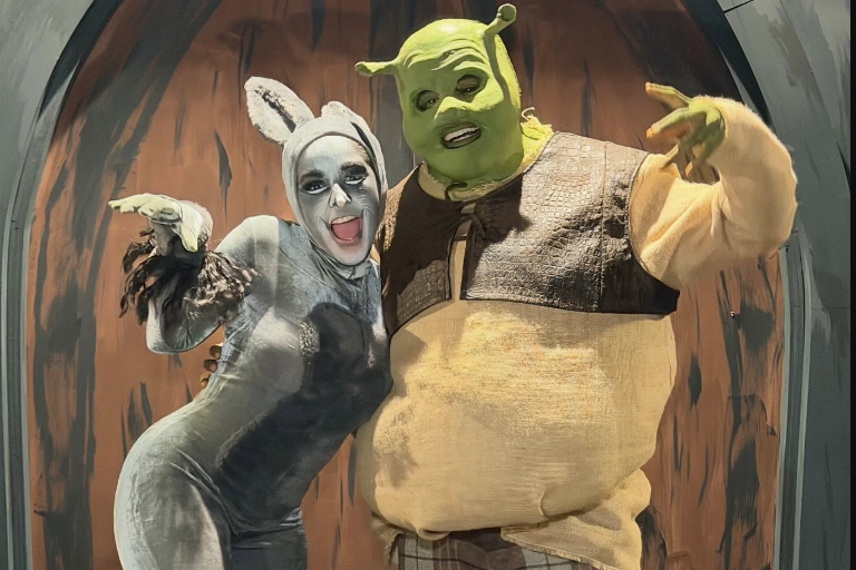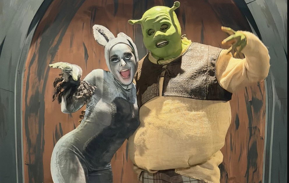 Eduin Caz se disfrazó del ogro verde más famoso del cine, mientras que Daisy Anahy optó por representar al carismático Burro, el inseparable amigo del protagonista.