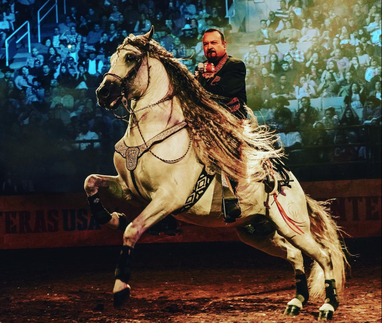 A caballo, Pepe Aguilar cerró “Jaripeo sin fronteras”, la gira que protagoniza a lado de sus hijos, Ángela y Leonardo, en el que deleitaron al público con todo tipo de canciones tradicionales del regional mexicano.
