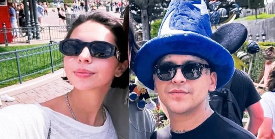 En las imágenes se puede ver a Christian Nodal luciendo un gorro de Disney inspirado en la famosa película Fantasía con las icónicas orejas de Mickey Mouse. Por su parte, Ángela Aguilar optó por un look más casual, llevando unos lentes y una playera blanca.