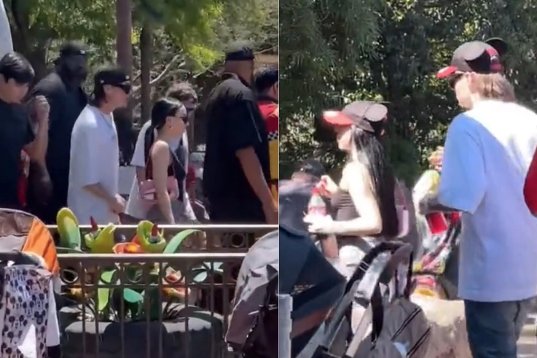 La pareja fue captada en una escapada por las instalaciones del parque de diversiones Disneyland París, en Francia, donde la argentina y el mexicano se compraron un par de sombreros de Mickey Mouse juntos y pasearon por el parque de diversiones.