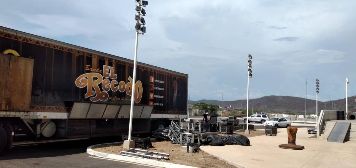 Desde el martes por la tarde, el staff de Banda El Recodo arma el escenario para el concierto que enmarcará la presentación del nuevo jersey del equipo de futbol Mazatlán FC.