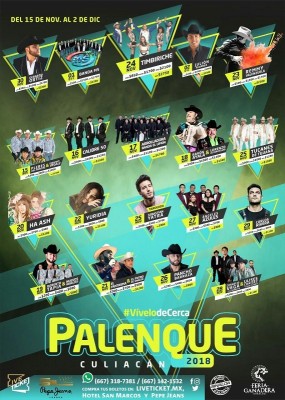 Los Plebes del Rancho, Timbiriche, La Arrolladora, Gerardo Ortiz, Banda MS, Julión Álvarez formarán parte del elenco del Palenque Culiacán, una gran fiesta que iniciará el 15 de noviembre y terminará el 2 de diciembre, dentro de la Feria Ganadera Sinaloa 2018.
