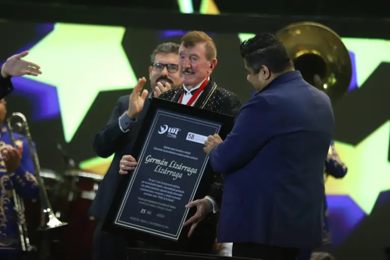 La velada también tuvo un capítulo de reconocimiento. “El Rey de la Banda”, Germán Lizárraga, recibió un homenaje por sus 75 años de carrera artística. Visiblemente emocionado, tomó el micrófono ante miles de personas para agradecer.