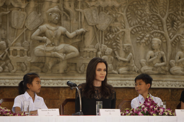 Angelina Jolie acudió junto a sus hijos a Camboya para presentar la cinta.
