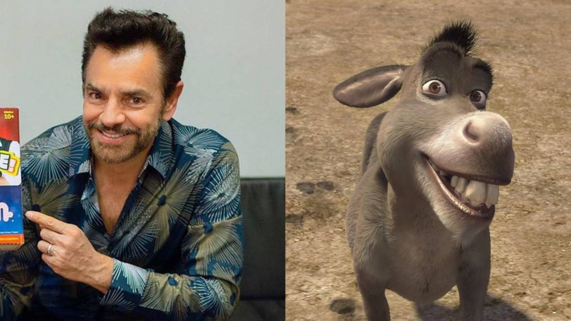 La voz que se escuchó en el video de Eugenio Derbez pertenece al comediante Eddie Murphy, quien realiza el doblaje en la versión anglosajona del mismo personaje. Murphy fue acompañado de Mike Myers como “Shrek” y Cameron Diaz en el rol de “Princesa Fiona”.