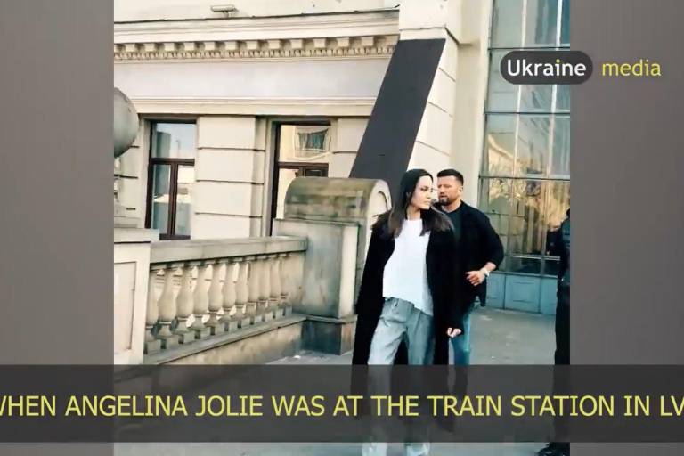 La actriz de cine Angelina Jolie, embajadora de la ACNUR, la agencia de la ONU especializada en atender a los desplazados por conflictos, tuvo que interrumpir su visita en Lviv, Ucrania, donde se encontraba visitando desplazados, luego que se emitiera una alerta de ataque aéreo.