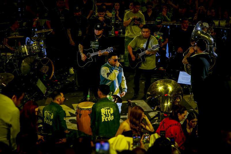 Desde que Jesús Ortiz Paz, vocalista de la agrupación; Samuel Jaimez, a cargo del requinto; Khrystian Ramos, el guitarrista y José García, que toca la tuba; salieron al escenario un poco antes de que fueran las 3 de la madrugada, los gritos eufóricos de los asistentes no pararon de sonar.