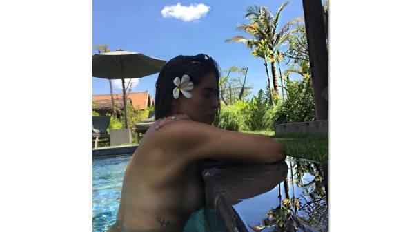 "En la imagen se le ve dentro del agua, de costado, con los senos al descubierto, y un tatuaje justo debajo de ellos"