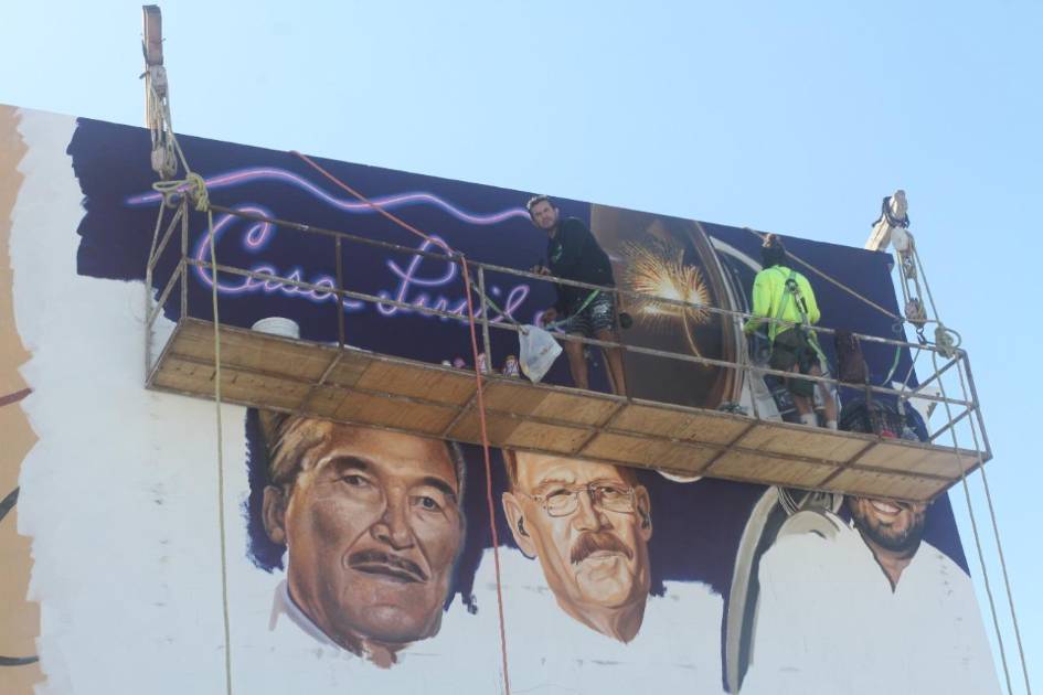 Noroeste es el primer medio que hace fotos de este mural, subieron a lo alto de la azotea de Casa Lucila y desde ahí alcanzaron a documentar el proceso.
