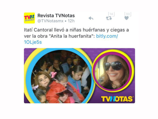 "Invita Itatí Cantoral a musical Anita La Huerfanita a niñas ¡invidentes!"