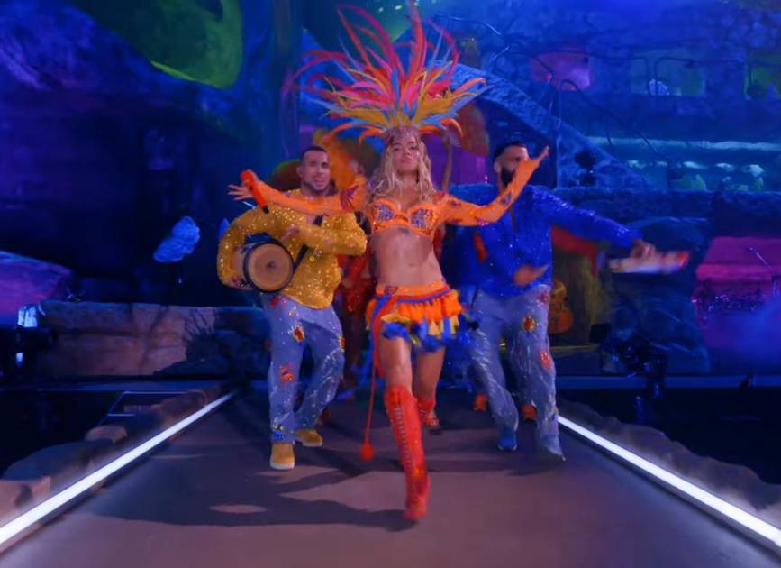Con Becky G cantó la canción “Mamiii”, J Balvin y Ryan Castro, quienes participaron en un segmento del show.