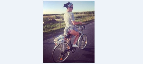 La cantante colgó en su cuenta de Instagram una instantánea paseando en bicicleta, donde un sexy "descuido" en el que su vestido se atora con su ropa interior, provoca que quede a aire libre parte de su trasero mientras ella aparenta no darse cuenta de lo ocurrido.