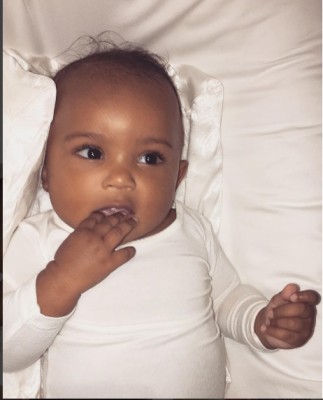 Subió a su cuenta de Instagram una foto de su hijo Saint West. El pequeño quien nació el pasado diciembre aparece acostado en una cama vestido con una pijama blanca.