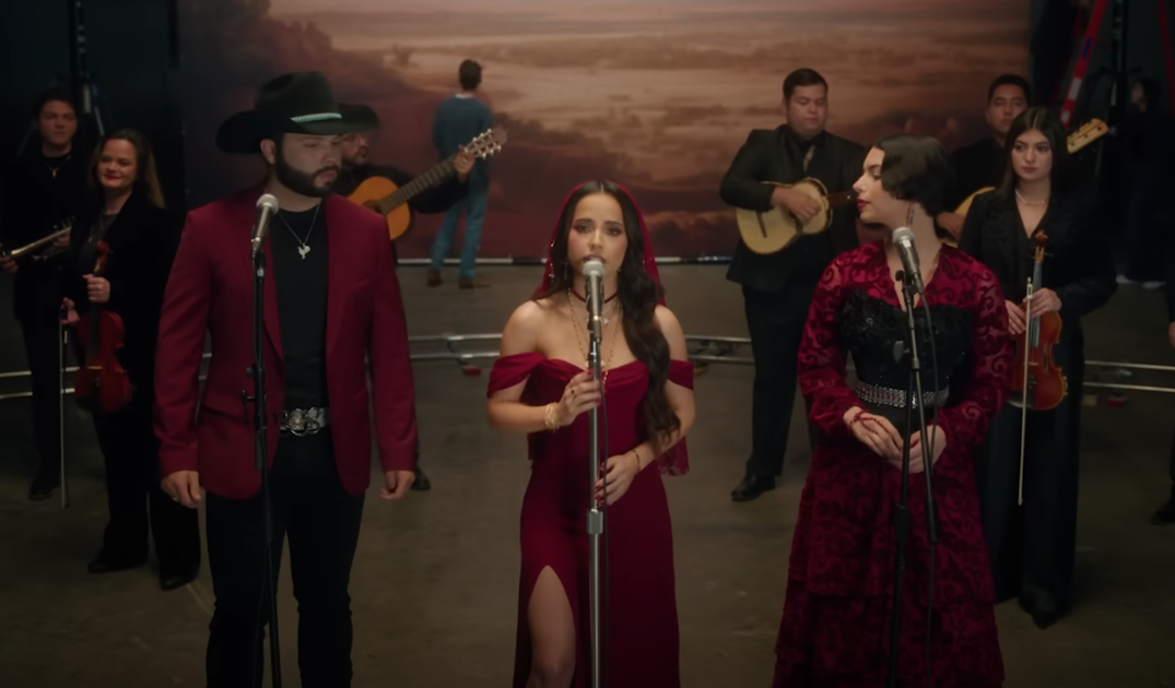 El vídeo empieza con un zoom íntimo que va revelando poco a poco al cautivador trío conformado por Becky G, Ángela Aguilar y Leonardo Aguilar, colaboración que nació del deseo de los fans por tener a estos grandes intérpretes juntos y que desde su lanzamiento en plataformas se viralizó, sumando al momento más de 700 mil vídeos en tiktok, mientras que en Spotify el tema rebasa los 34 millones de reproducciones.
