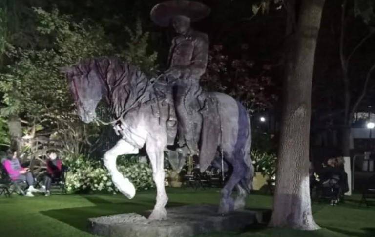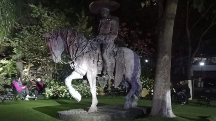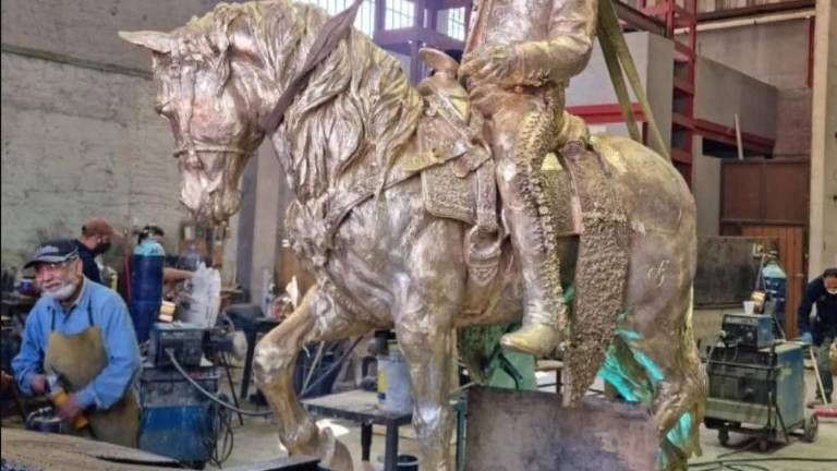 La obra de gran formato hecha en bronce que mide desde el caballo hacia arriba aproximadamente 3.60 metros y pesa dos toneladas, fue un encargo del mismo intérprete de Acá entre nos y muestra a Vicente montando a caballo.