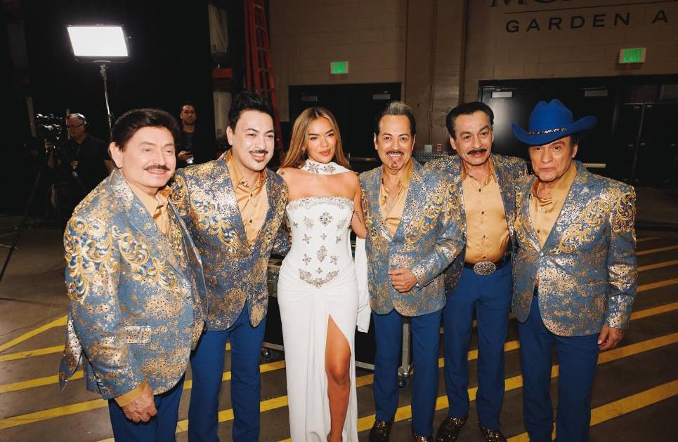 La colombiana felicitó a la agrupación sinaloense por su presentación en la gala y, entre bromas, les pidió prestado el bajo recubierto con la bandera de los países de América: “¿Me lo prestan pa’ Coachella?”, soltó entre risas, mientras se tomaban la esperada fotografía grupal. “Soy la más fan”, remató justo antes de posar con la agrupación.