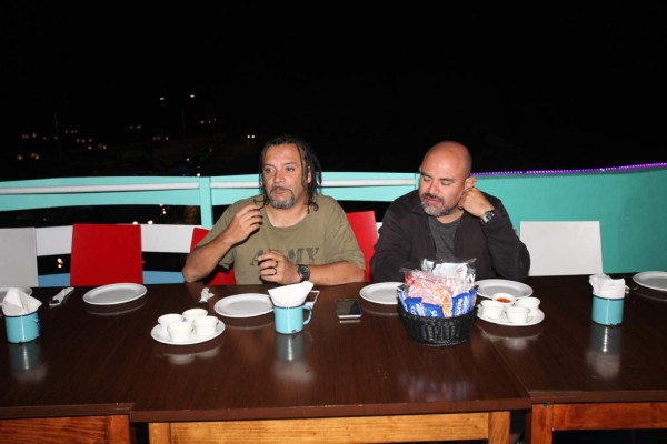 El saxofonista y el tecladista de Gondwana ofrecieron una conferencia en la terraza del restaurante Barracrudas, en Olas Altas.