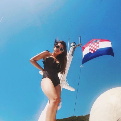 En la imagen se muestra a la actriz de 22 años posando en traje de baño cerca de la bandera de Croacia.