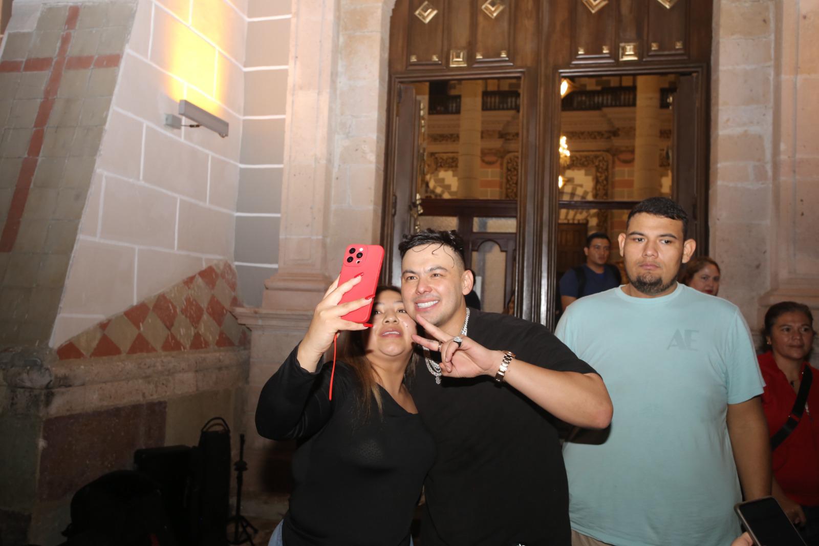 “Creo que siempre he dejado bien claro que amo a puerto, que amo a mi ciudad, y obviamente siempre mis respetos para mi religión, yo soy católico de corazón, y lo he sido de nacimiento también, estoy bautizado en la iglesia católica; conozco también el Padre (Adán Pazos) que es un buen amigo, quise compartir un momento con mi pueblo, con mi gente de Mazatlán y con todos los que se dieron cita esta noche, obviamente mi talento se lo dedico a Dios, a la vida, a la Inmaculada que hoy la estamos celebrando, y siempre feliz de compartir”, dijo.