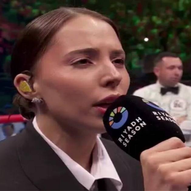 Majo Aguilar llegó hasta Arabia Saudita para interpretar el Himno Nacional Mexicano previo a la pelea entre Canelo vs Scull.