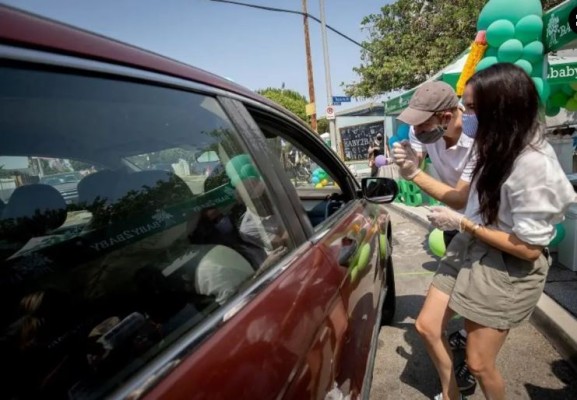 Con cubrebocas y guantes, Meghan y Harry entregaron cuadernos, mochilas, lápices y libros desde la calle a los coches. Las familias no podían bajarse de los vehículos para evitar el contacto, pero aún así los Duques de Sussex se mostraron muy cercanos con todos y desde la acera entregaban todo a las familias.